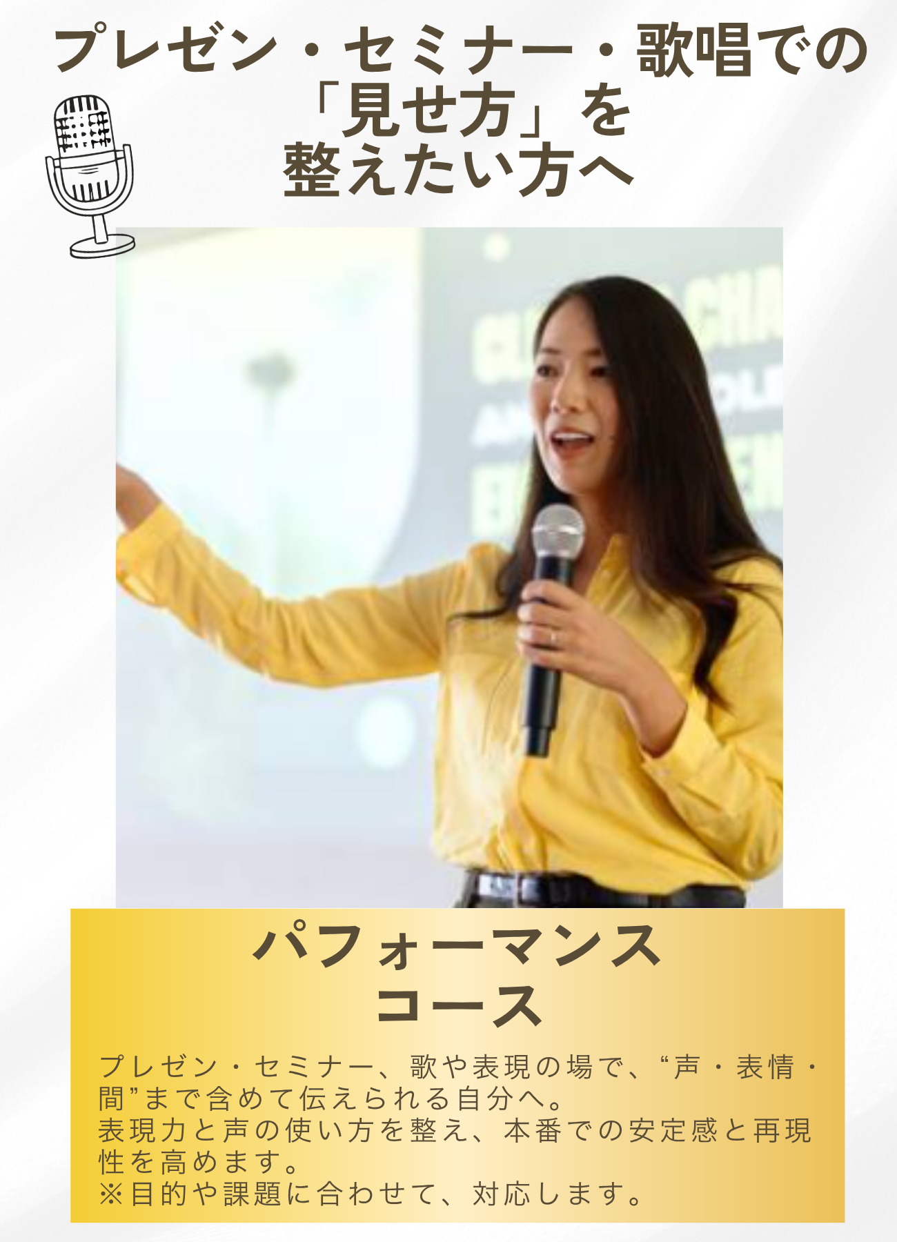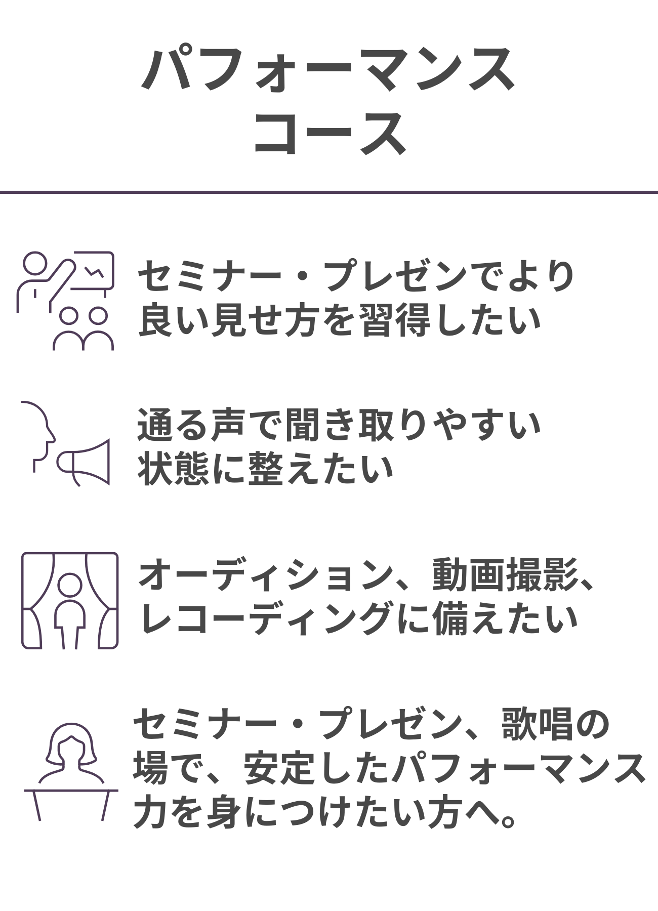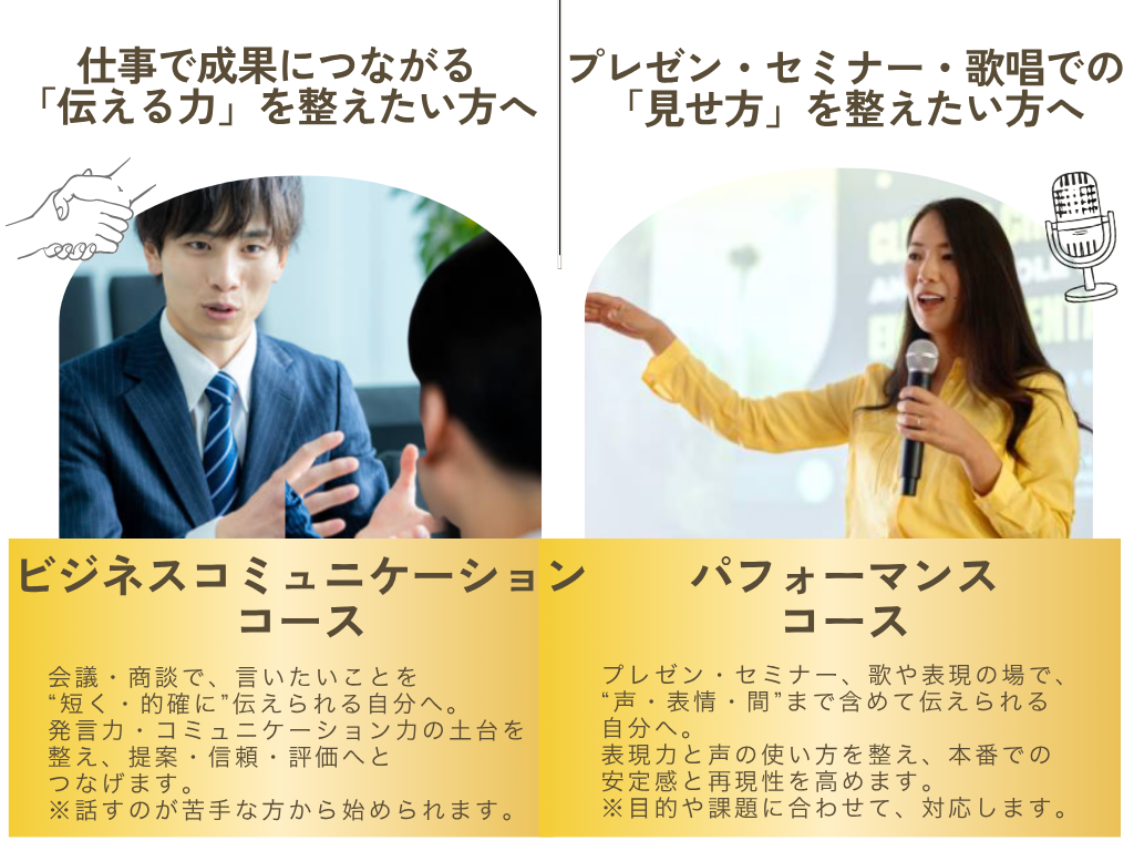ボイストレーニングや表現法に、心理学・脳科学の知見を組み合わせた独自メソッド 『チセ式』 で、長年悩んでいた問題に、短期間で確かな変化とステージアップを実現します。