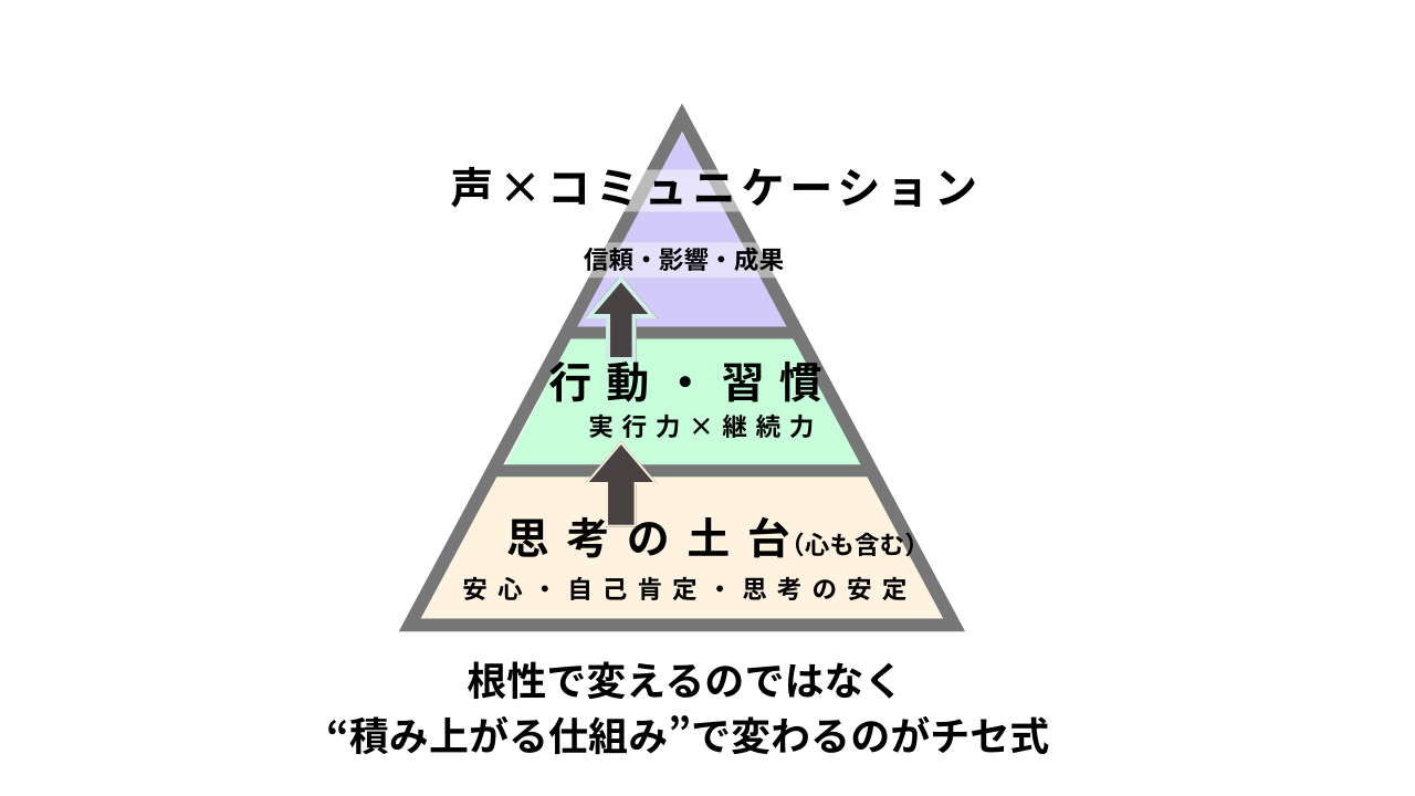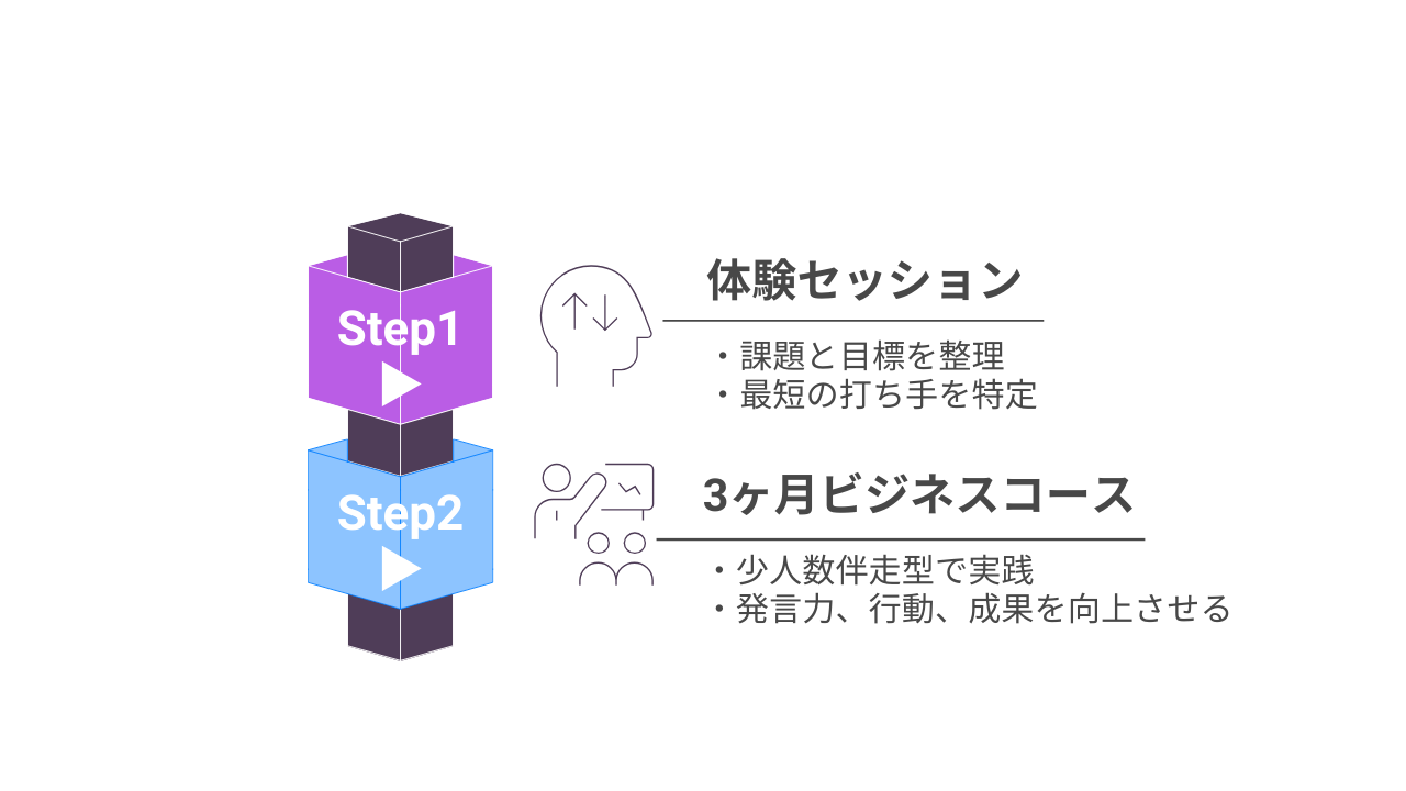3ヶ月ビジネスコースは、これまでのボイトレ×メンタルケアコースの内容を土台に、「整える」だけで終わらず、仕事での発言・行動・成果へ具体的につなげるために生まれた新しいコース【ステージアップ版】です。